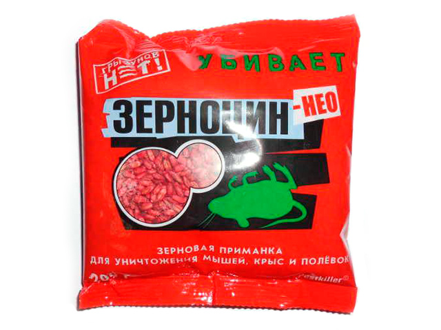 Средство родентицидное «ЗЕРНОЦИН НЕО» представляет собой готовую к применению отравленную приманку в виде гранул красно-коричневого цвета. Допускается использование пищевых привлекателей. В состав средства входят краситель и горечь-битрекс, необходимые для предотвращения случайного отравления людей. В качестве действующего вещества (ДВ) содержит бромадиолон - (3-[3-(4'-Бромобифенил-4-ил)-3-гидрокси-1-фенилпропил]-4-гидроксикумарин) - 0,005%.